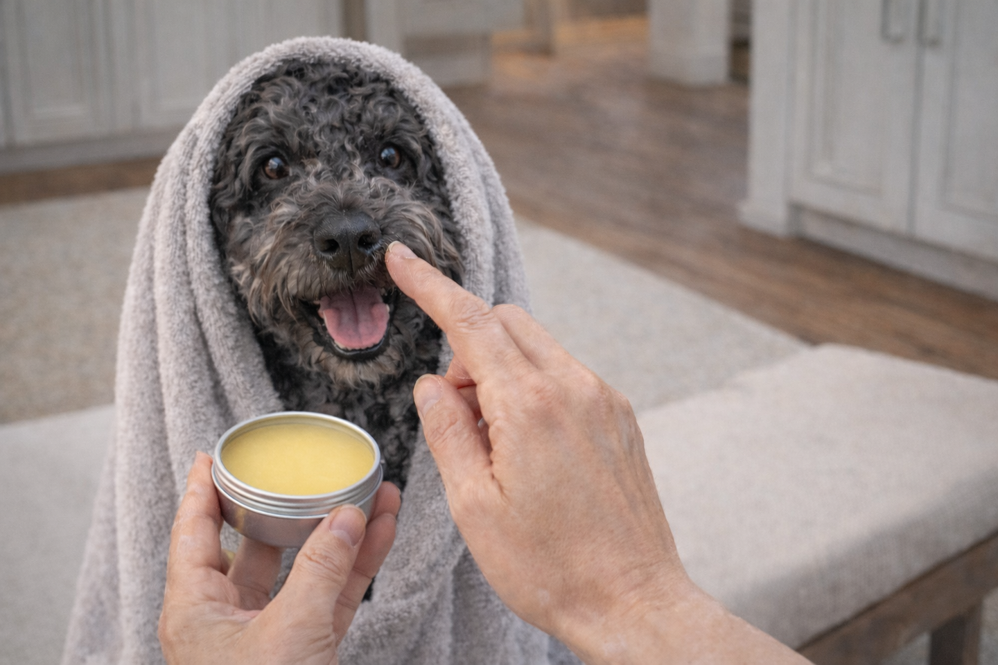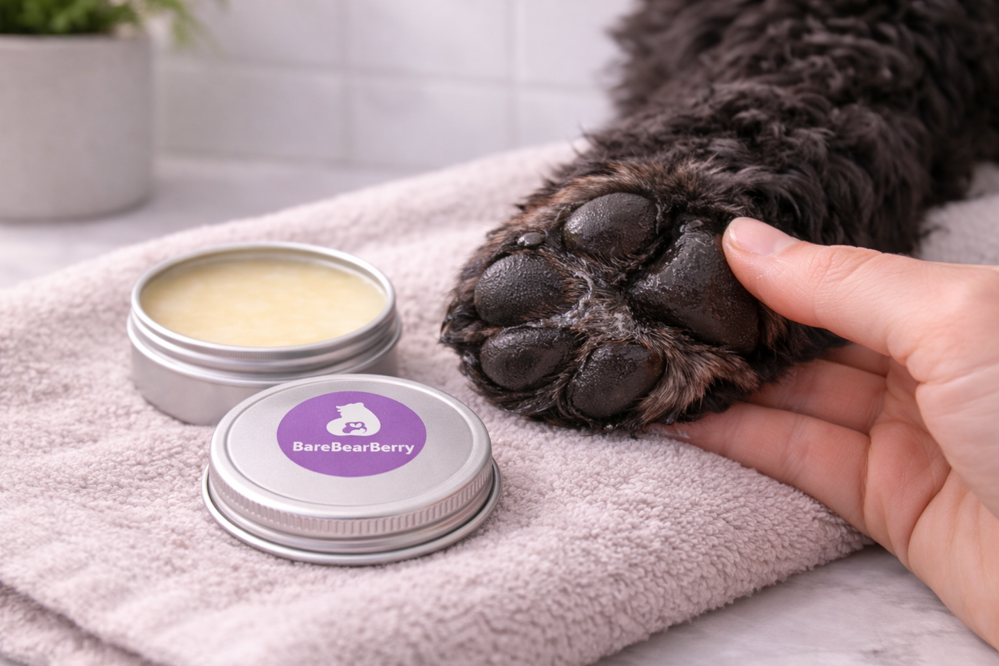 A protective balm that moisturizes dry paws and noses while helping prevent cracking. Forms a gentle barrier against cold weather, rough ground, and daily wear.